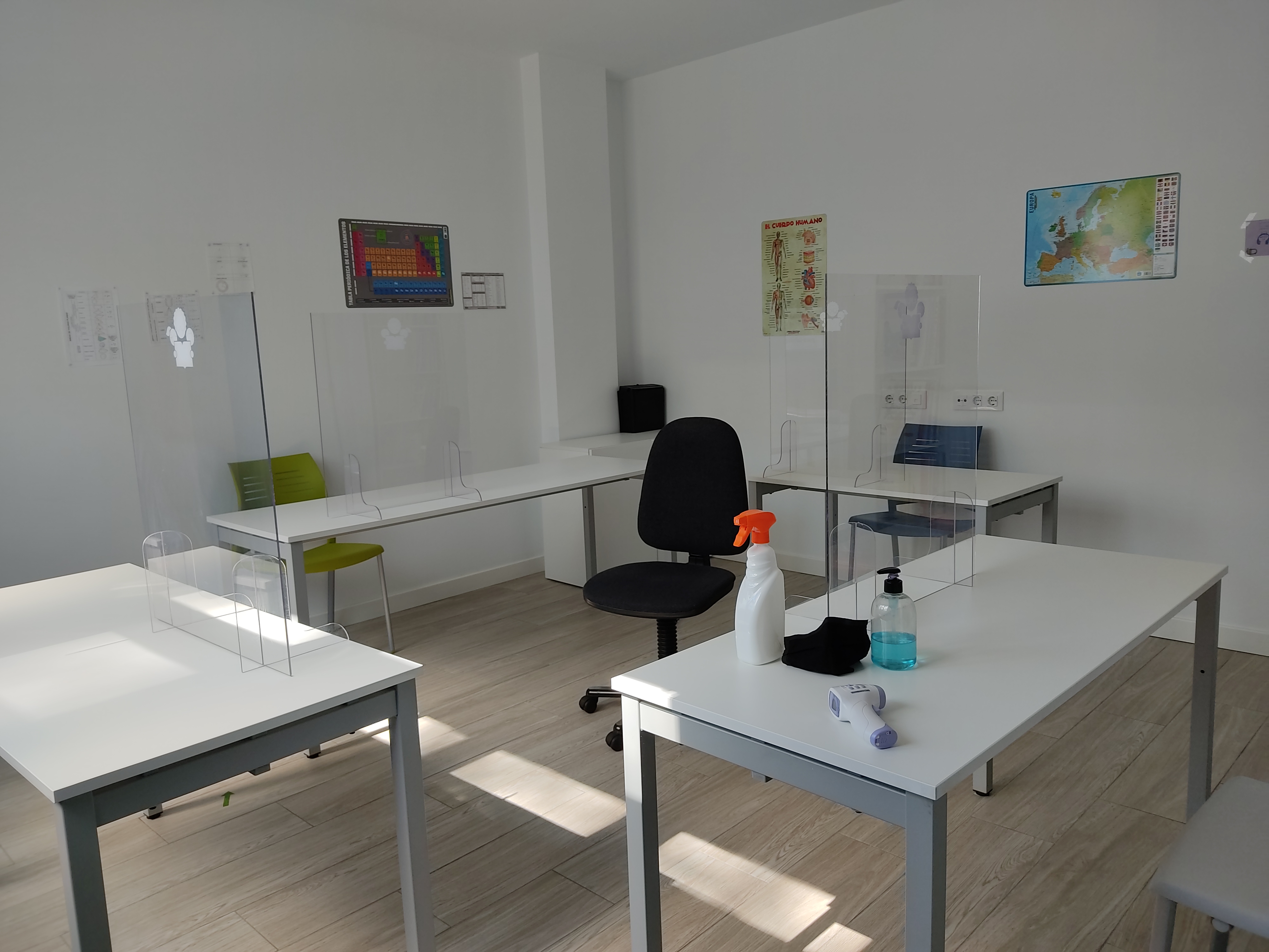 Mascarilla, toma de temperatura, gel desinfectante, separación entre alumnos, mamparas protectoras, desinfección de mobiliario tras cada uso, desinfección completa…